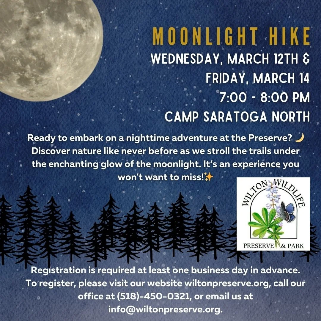 Are you interested in seeing the Preserve at night? View nature in a new light, as we walk the trails in the moonlight. An unforgettable experience for all ages!
